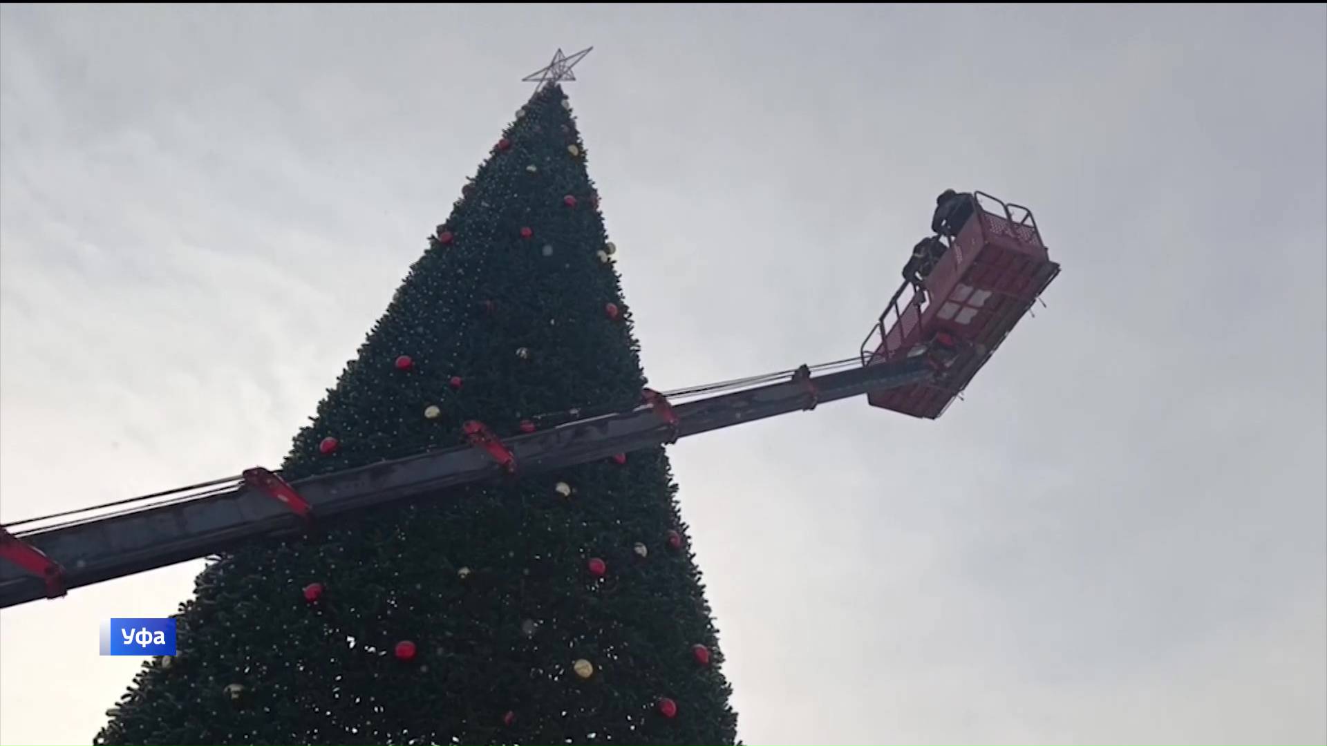В Уфе на площади Салавата Юлаева приступили к разбору пиксельной ели