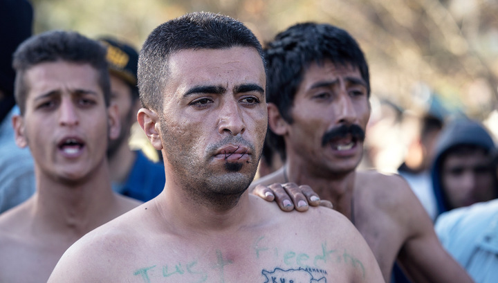Застрявшие на границе между Грецией и Македонией мигранты в знак протеста против невозможности продолжить путь в Европу зашили себе рты. Возле приграничной деревни Эйдомени несколько полуобнаженных мужчин с зашитыми ртами сели на железнодорожные пути перед кордоном полиции. На груди и лбу у них была надпись "Справедливая свобода".